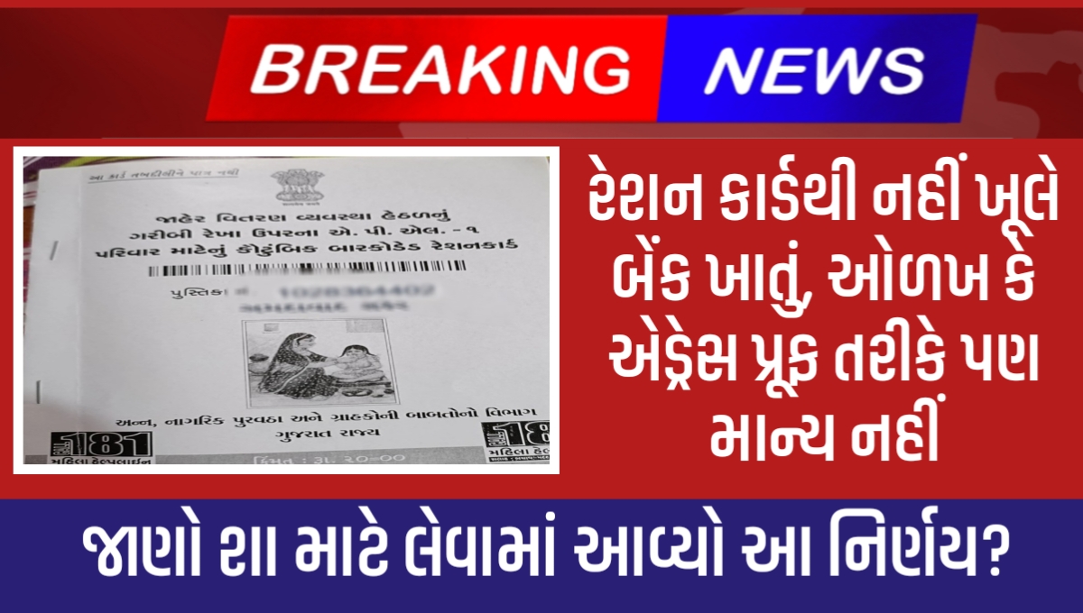 રેશન કાર્ડથી નહીં ખૂલે બેંક ખાતું, ઓળખ કે એડ્રેસ પ્રૂફ તરીકે પણ માન્ય નહીં, જાણો શા માટે લેવામાં આવ્યો આ નિર્ણય?